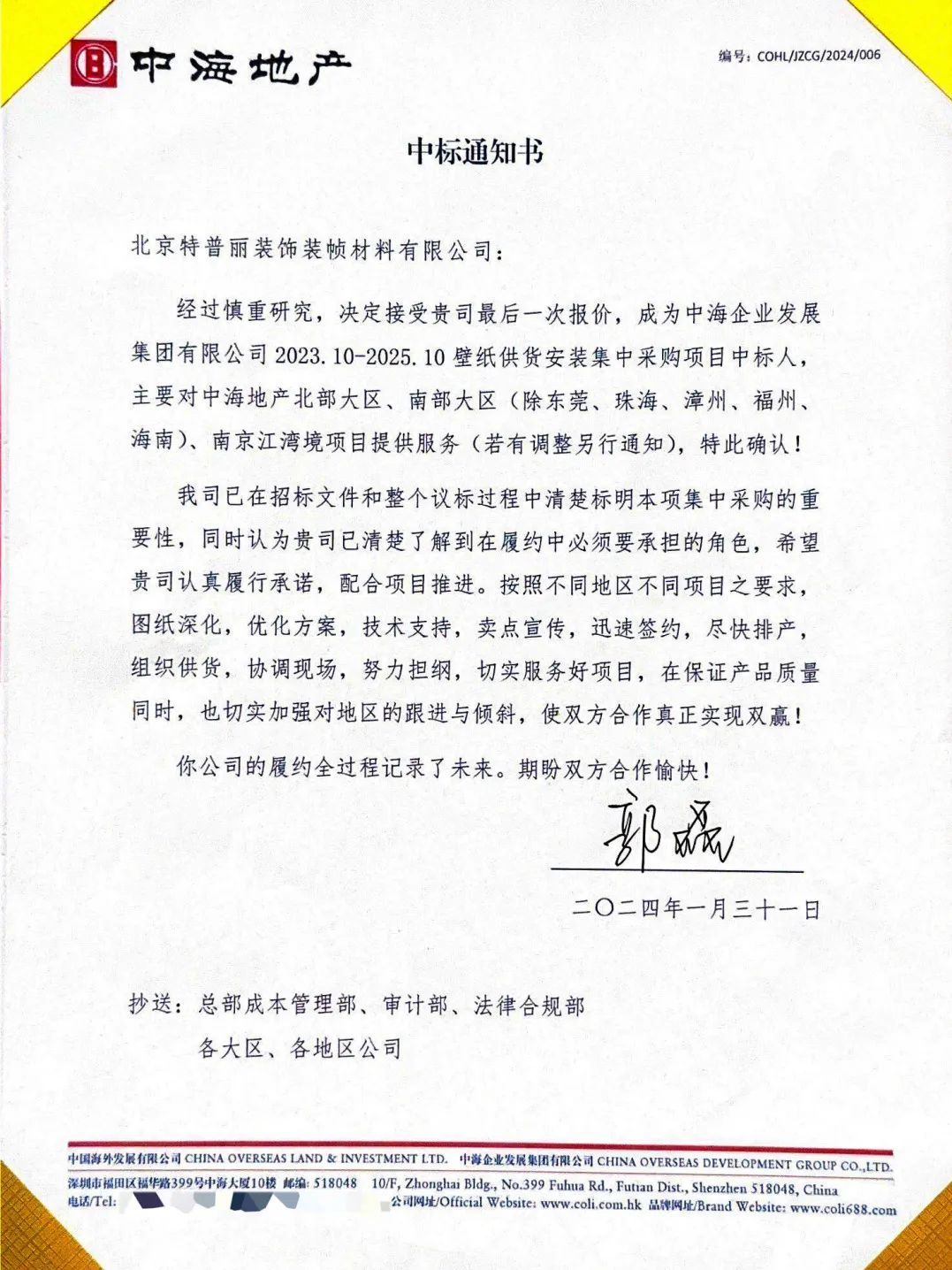 特普麗正式成為中海地產(chǎn)2023-2025壁紙供貨安裝集中采購(gòu)戰(zhàn)略合作商!