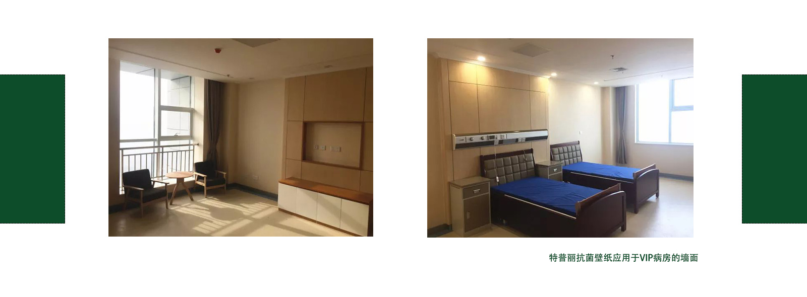 山西運城市第一醫(yī)院的本次裝修項目中共使用近五萬平米的特普麗抗菌壁紙,主要應(yīng)用于普通病房、婦產(chǎn)病房、監(jiān)護病房、VIP病房、診室等區(qū)域。
